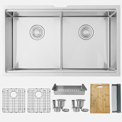 32 inch Workstation Double Bowl Undermount 16 Gauge Stainless Steel Kitchen Sink with Built in Accessories